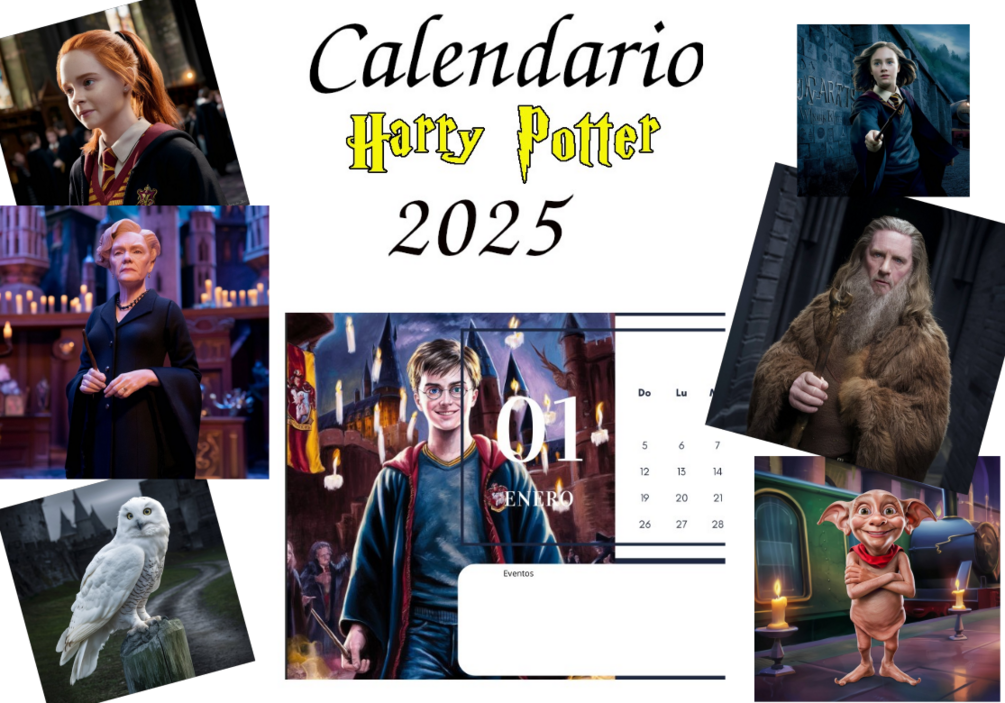 Calendarios de pared y de escritorio, Harry Potter, son imprimibles, las imágenes son generadas por una IA, por eso los personajes son diferentes a los reales.