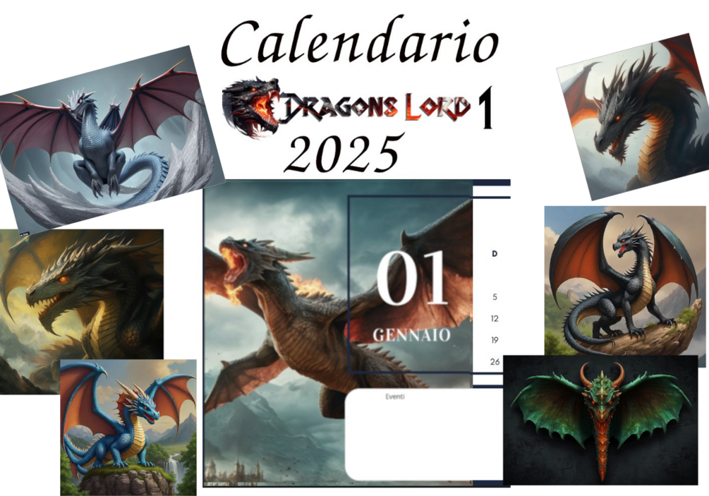 Calendario da muro e da tavolo, Dragons, è stampabile, le immagini sono generate da un'intelligenza artificiale