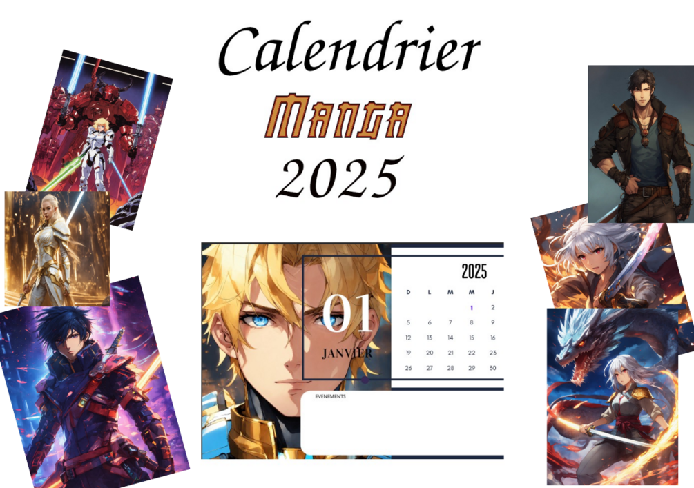 Calendrier mural et de bureau, de Manga, il est imprimable , les images sont générer par une IA
