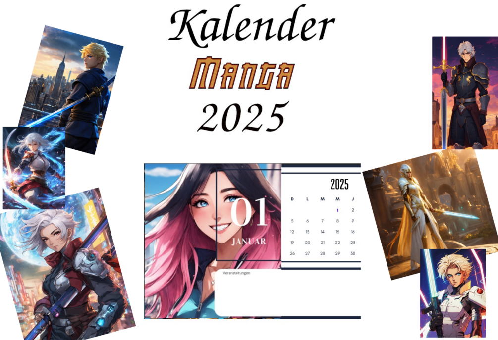 Wand- und Tischkalender, Manga, er ist ausdruckbar, die Bilder werden von einer KI generiert